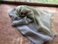 おお麻100%、手織りならではの素材感。草木染め、藍+マリーゴールド(黄緑)と野ばら(グレー)の2色のストライプからなるストールです。